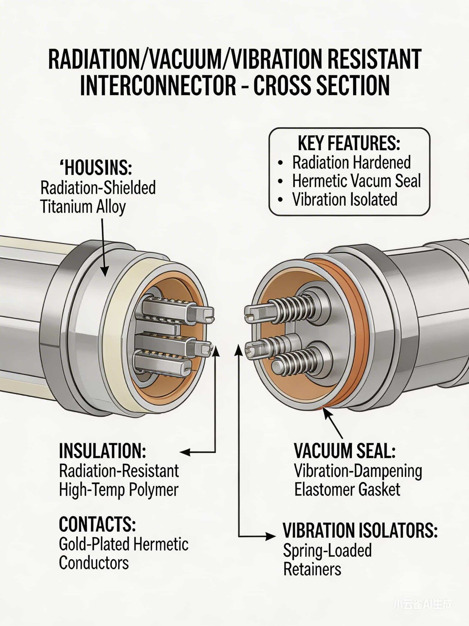 Extreme environment interconnects resistant to radiation, vacuum, and vibration.